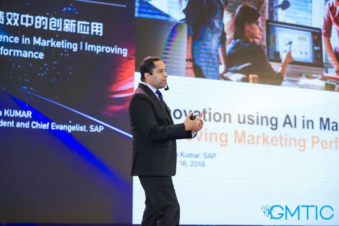 2018GMTIC全球营销技术创新峰会在本月15-16日在上海宝华万豪酒店举行并圆满落幕,来自SAP的副总裁Shailendra Kumar在大会第二日“人工智能”平行论坛中发表了题目为“人工智能在提升营销绩效中的创新应用”闭幕演讲。演讲中Shailendra Kumar讲述了人工智能在人与人互动间的作用、智能企业、SAP解决方案等精彩内容,获得参会来宾的广泛认可。