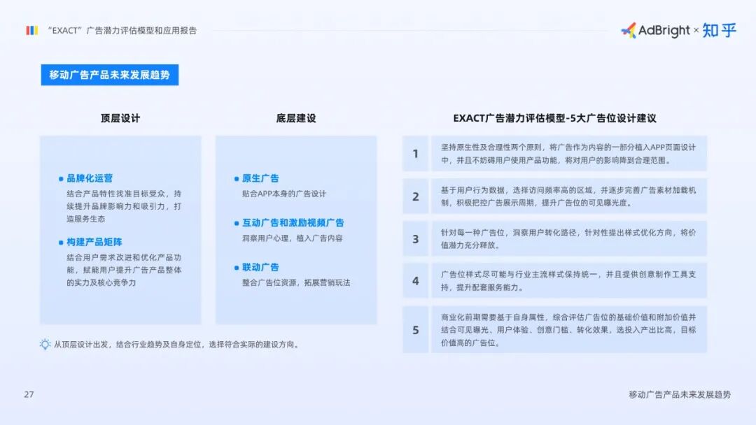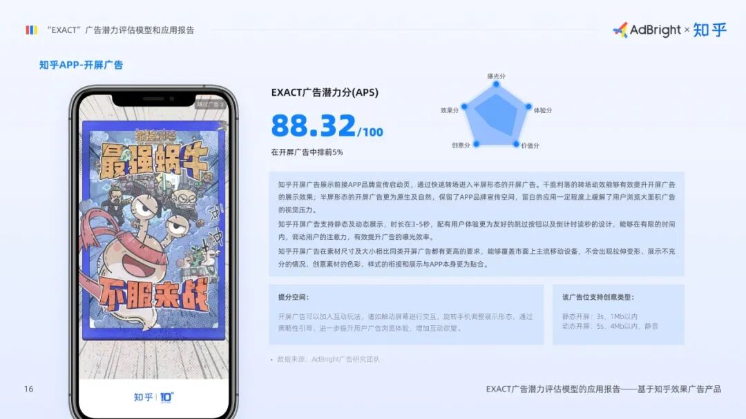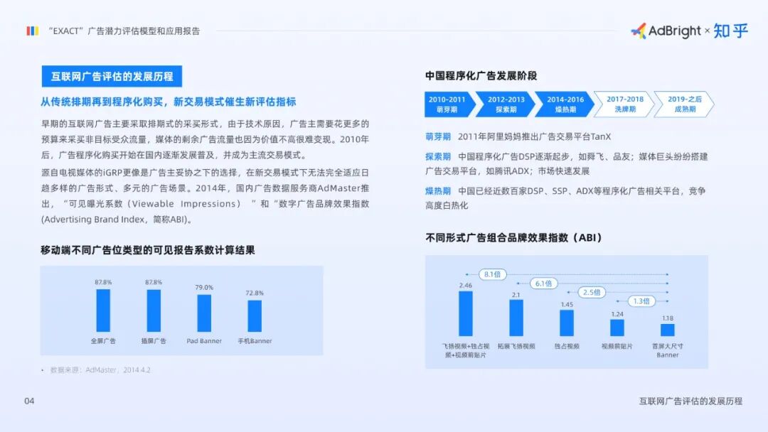 3月29日,专注APP广告商业化的移动广告技术服务商AdBright联合知乎商业化团队正式发布《“EXACT”广告潜力评估模型和应用报告》(以下简称“应用报告”)。